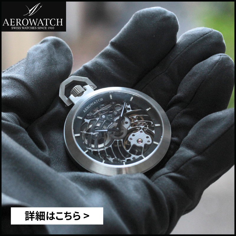 代々一流の時計職人であった、時計技術と伝統を引き継ぎ、スイス ニューシャテル市に設立されたブランド「AERO アエロ」 アエロ(AERO)社は、代々一流の時計職人であった「クレヴァジュ家」の時計技術と伝統を引き継いだマキシム クレヴァジュ氏によって1942年スイス ニューシャテル市に設立されました。 現在は、その次男であるジョルジュを経て、斯界(しかい)のベテランであるデニスボルツリが社長となりスイスでは数少ない高級ポケットウォッチの専門メーカーとして活動しております。 先達より受継がれたヨーロッパ古来の"打ち出し技術"や、一流の職人の優れた"彫刻技術"による手づくりの暖かさに尽きます。 日本におきましても専用メーカーならではの豊富なバリエーション、またハンドメイドメーカーならではの精密なメカニズムと、どこか懐かしさ漂う美しいフォルムを持つ逸品として30余年もの間多くの人々に愛されています。