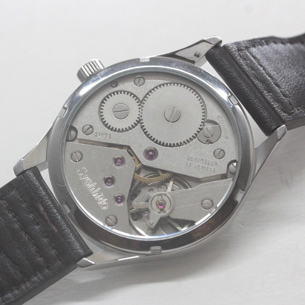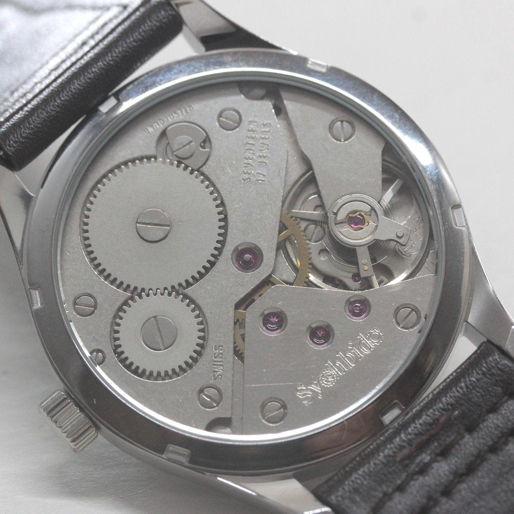 ムーブメントは、スイス製ユニタス6498のリサイクルムーブメントを使用。無駄な装飾がないシンプルなデザインですが、オーバーホールが完了しており、メンテナンスを繰り返しながら長くご愛用いただけます。