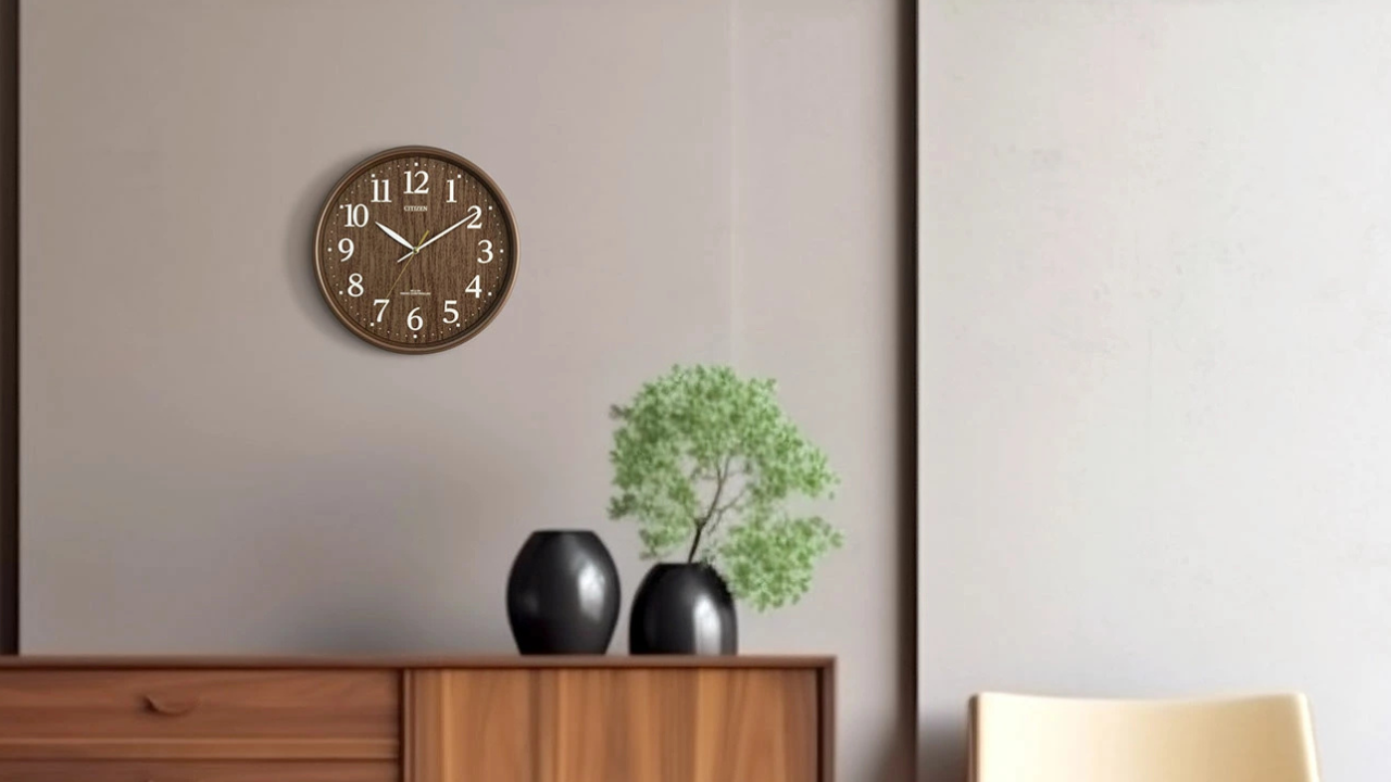 CITIZEN シチズン 木枠 電波 掛け時計 8MY535-006 茶色