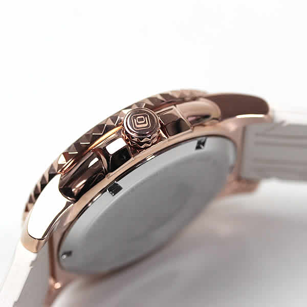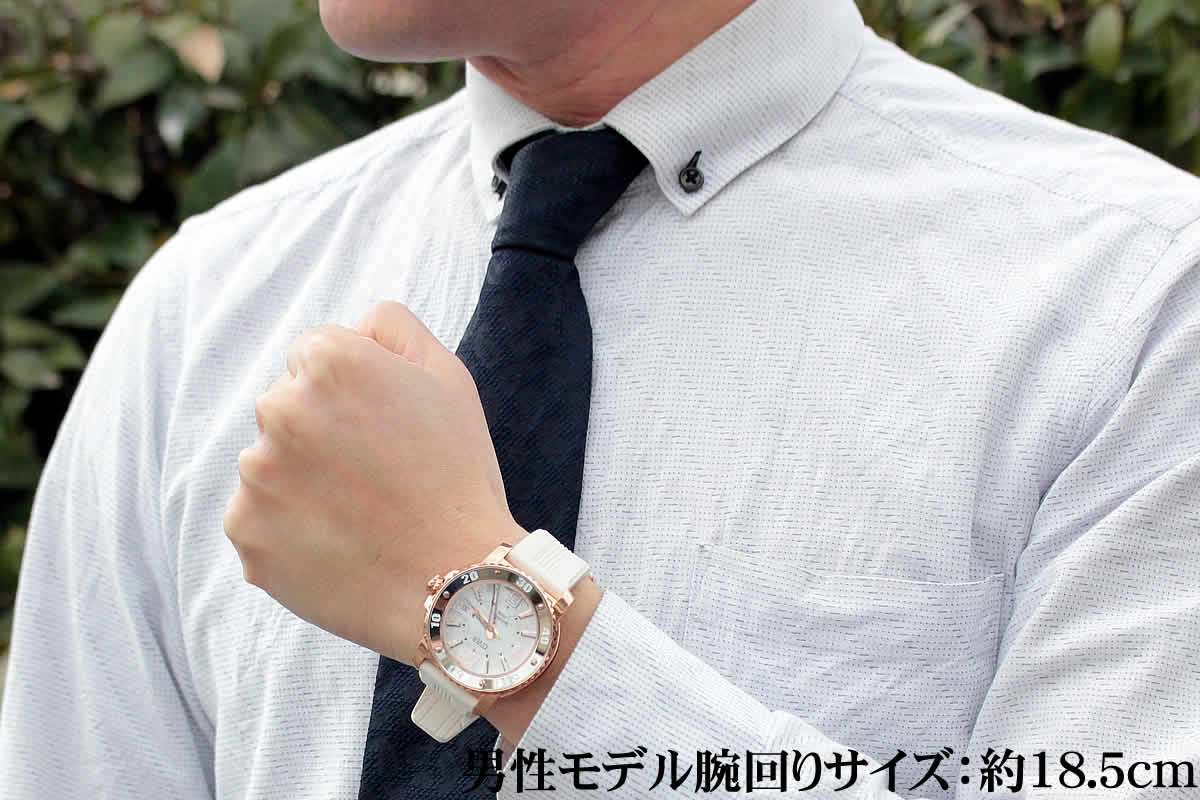 清潔感あるホワイトラバーと高級感のあるゴールドカラーの組み合わせ。いつまでも上品なダイバーズウォッチ。