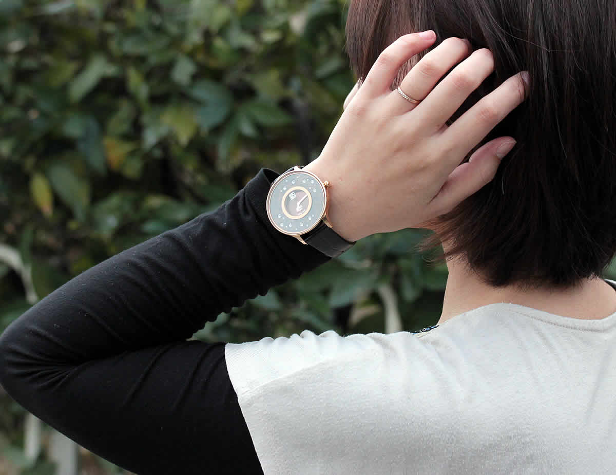 ![]() オフィスでもオフの日でも。嫌味のないスワロフスキークリスタルの配置が丁度いい、レディースウォッチ。