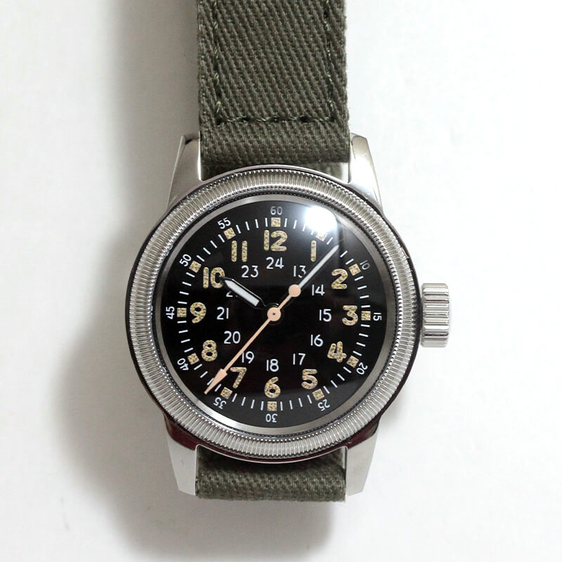 時計部分はパイロットナビゲーションウォッチTYPE A-17のウォルサム復刻版です。 TYPE-16の改良版で1950年代から支給になりました。
