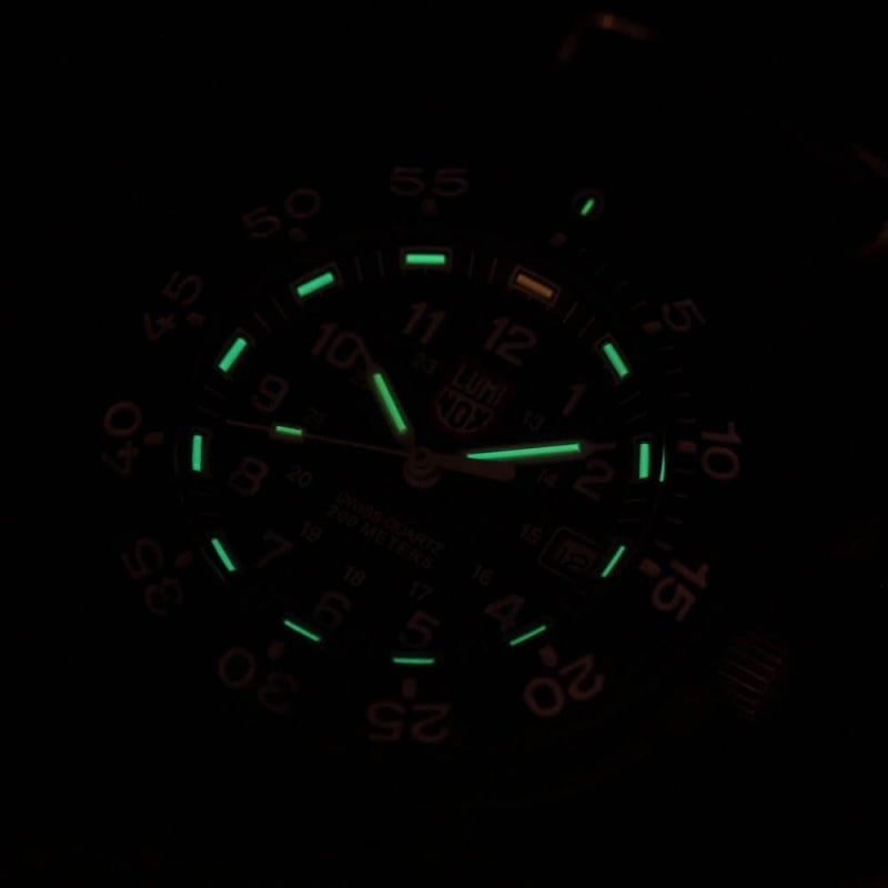 ルミノックスの特徴である自己発光システム、LLTで暗所での視認性を確保。