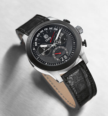 バロック建築中世の街並みを残す美しいソロトゥルン州は、別名「聖なる11の街」とも呼ばれています。 スイス・バーゼルにも近いこの街で、COVER(コヴァー)は創業しました。 こちらの モデルは、そんな街にどうして「11」にこだわった特別なモデル。トログラード(曜日カレンダー)、クロノグラフ、ビッグデイトカレンダーなど多機能! ビジネスシーンだけでなく、カジュアルで使えるにも個性派ウォッチです。 正美堂専務:合田圭四郎 |