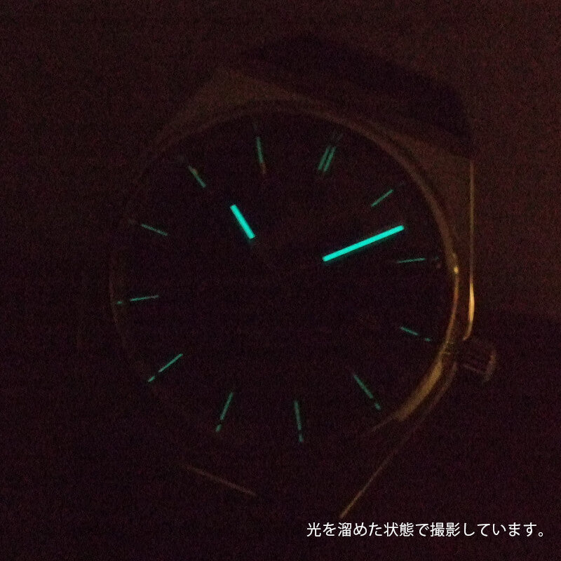 インデックスと針にはSuper-LumiNova®コーティングが施されており、明るいところで光を貯めて暗いところで発光。