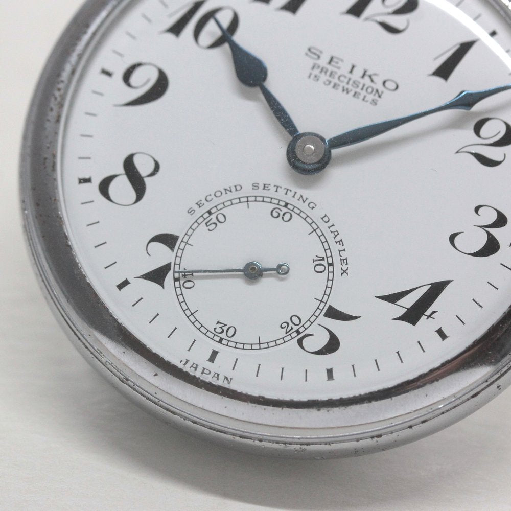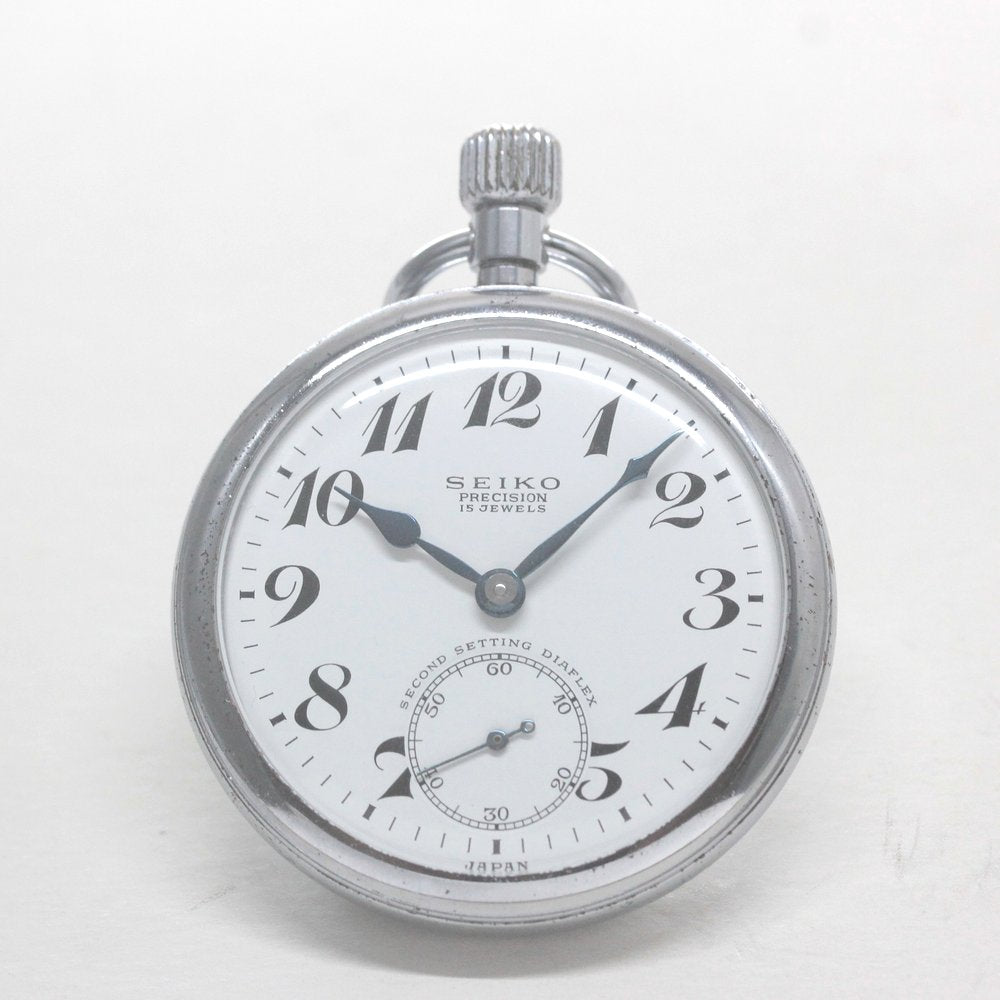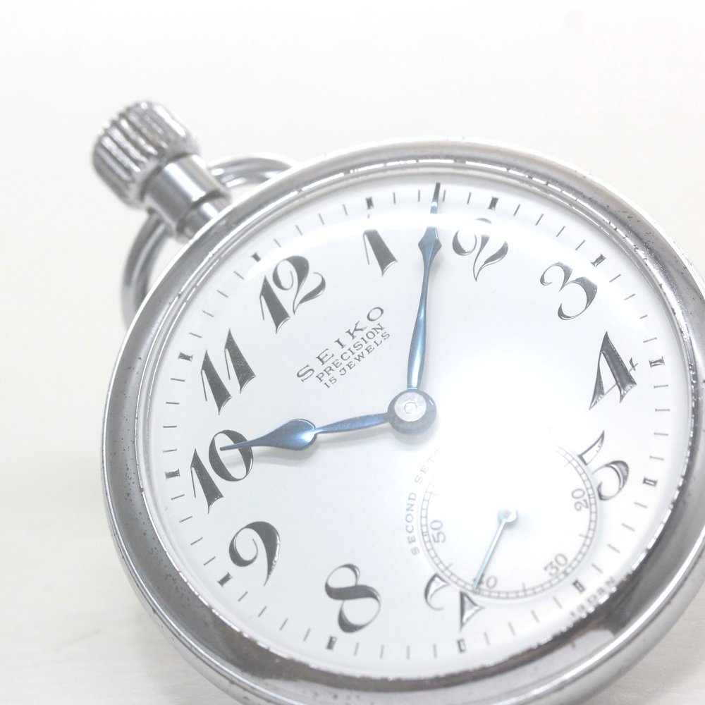 おすすめコメント:すでに絶版の懐中時計で、もう新品では手に入らない、とても希少な時計です。国鉄時代の職員が使用し、正確さが世界トップレベルの日本の鉄道史に欠かせない存在の19セイコー。15石で秒針止め機能がついているので、ハイスペックな時計です。状態のいい19SEIKOは年々手に入りにくくなってきており、オーバーホールも完了している、まだまだ使える時計です。 裏蓋には「昭 40 1085 国鉄関西」のモデルとなります。 廃棄された品を示す「廃」マークが刻印されております。