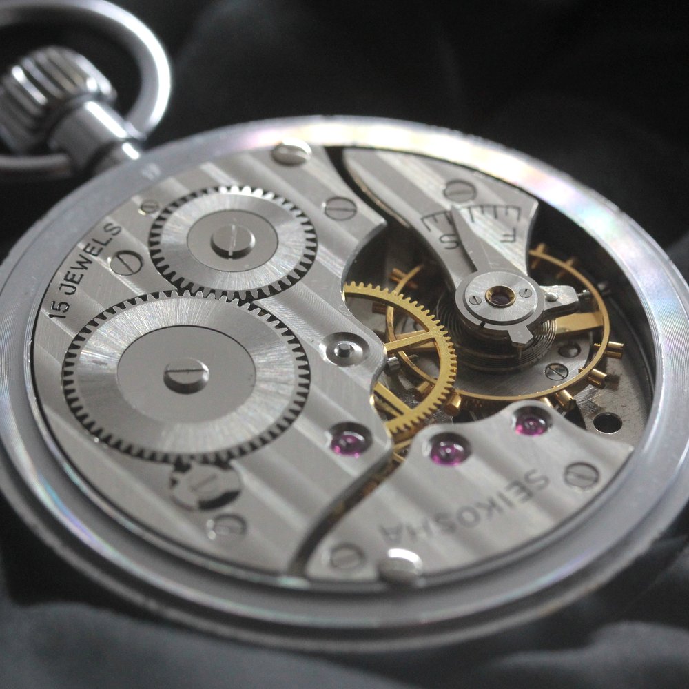 オーバーホール済で、日差30秒以内に調整します 昭和42年の19セイコー鉄道時計/15石/秒針止め機能/絶版時計/19seiko-1308