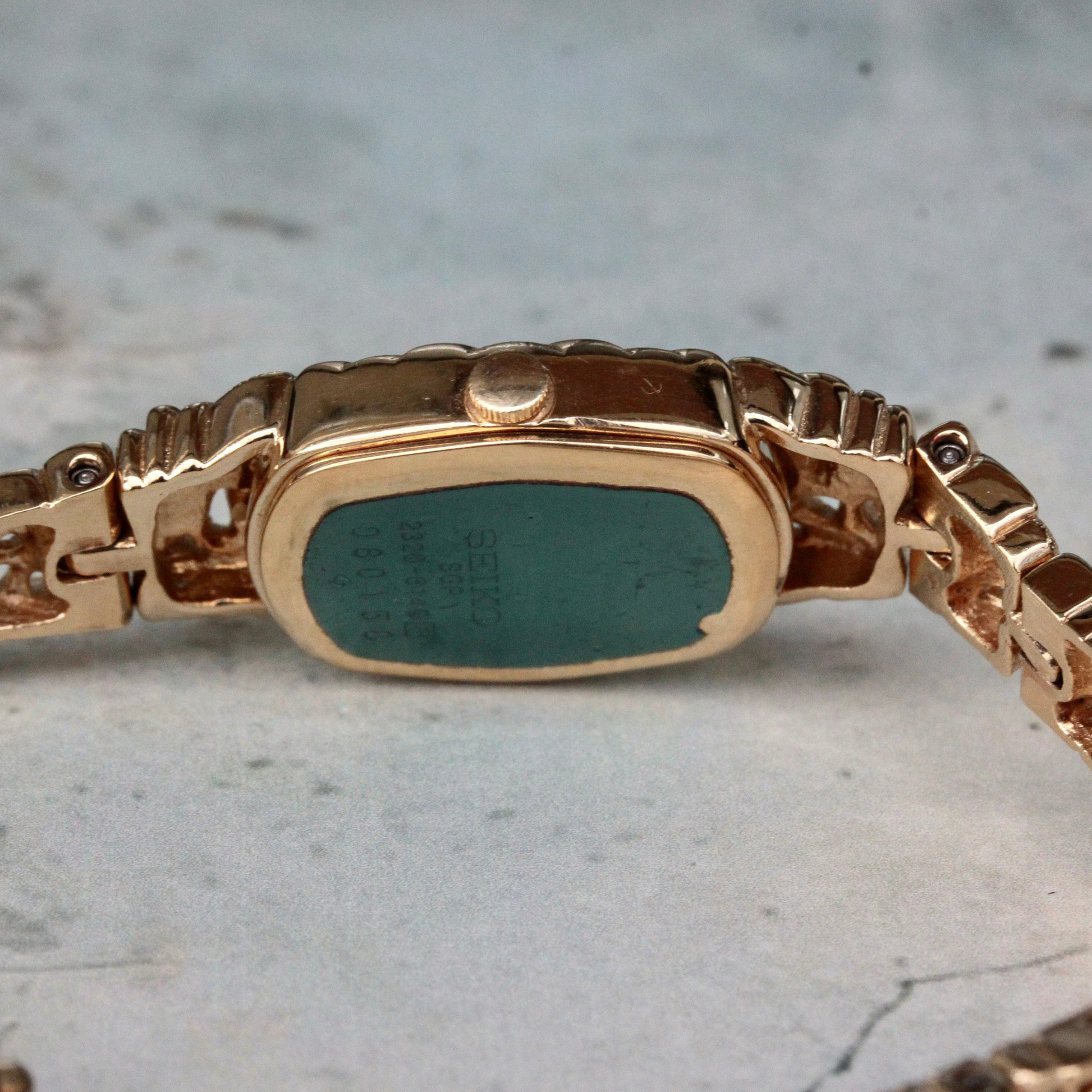 日本が誇るSEIKO / セイコーの、ゴールドカラーと繊細なブレスが美しいスクエア型ドレスウォッチ。