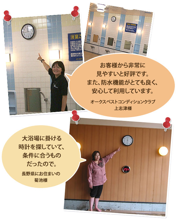 防滴・防塵掛け時計をご購入いただいたお客様より、防滴・防塵掛け時計を実際にご使用いただいている画像を頂きました。サンプルとしてページ掲載をさせていただいております。