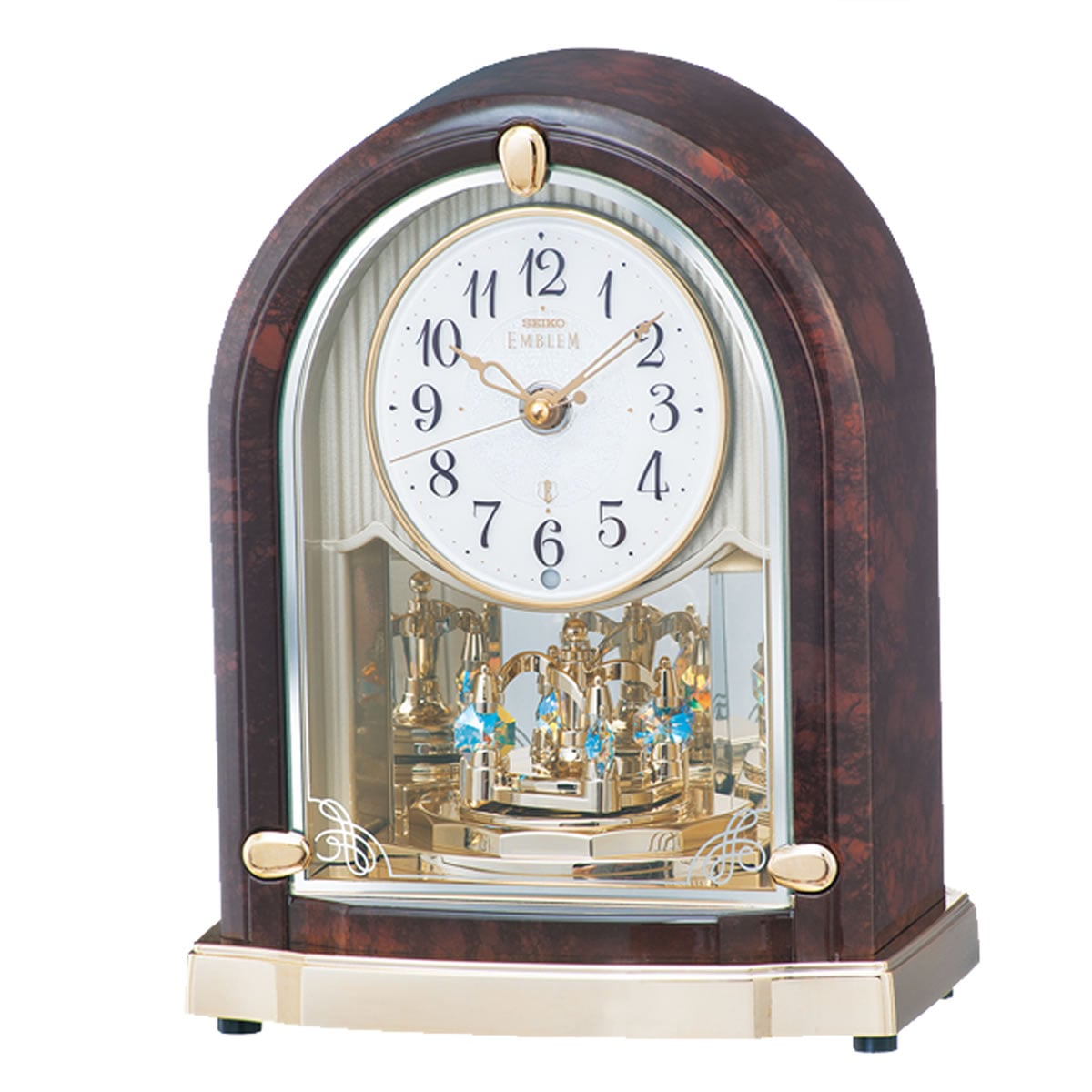 SEIKO EMBLEM Radio-Controlled Amusement Table Clock with Rotating Ornament, HW591B, Dark Brown