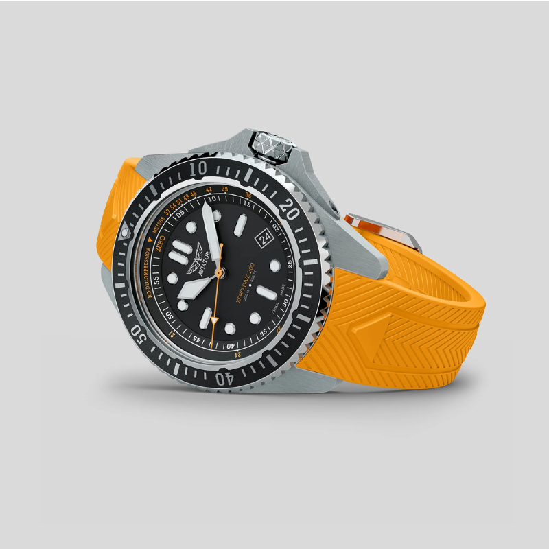 「XPRO DIVE 200」は、ブランド初の本格ダイバーズシリーズであり、海と空をつなぐ”というAVIATORの新たな挑戦を象徴するモデルです。