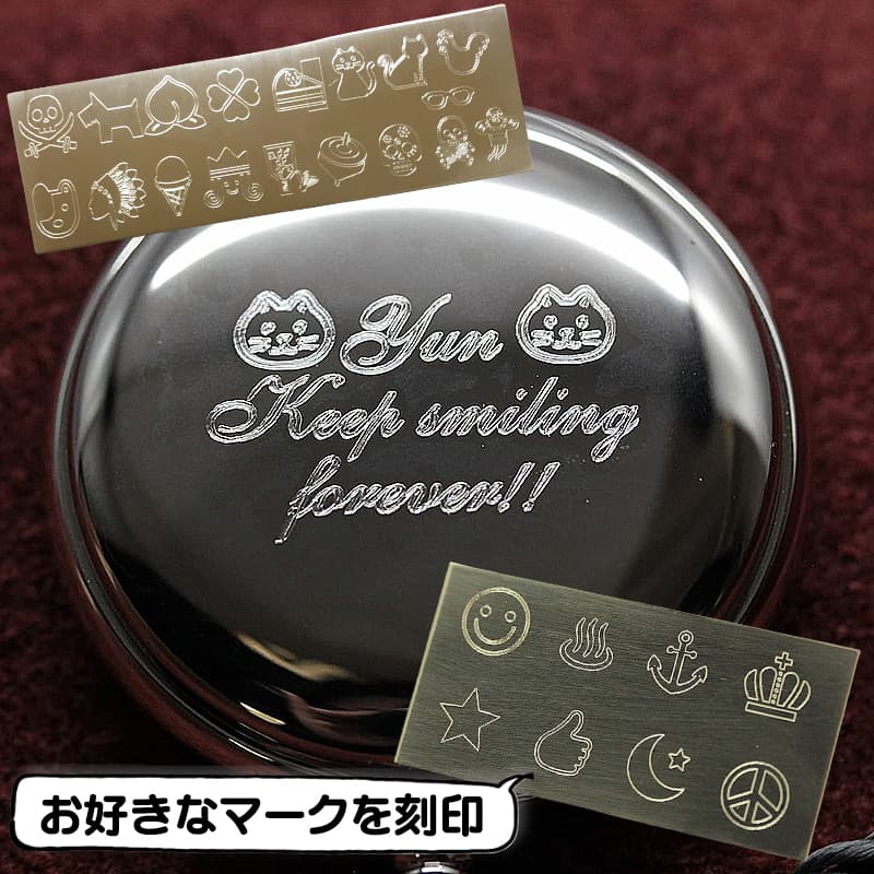 - マーク刻印は、時計の「本体裏」のみ刻印可能となっております。懐中時計への「蓋内側」は不可となっております。ご了承くださいませ。
