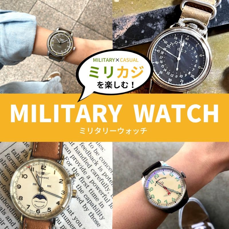 無駄を削ぎ落としたソリッドな機能美。パッと見て瞬時に時刻が認識できる視認性の高さ。グッと「男前度」をアゲてくれる高いファッション性。軍用を原点にカジュアルアレンジした人気のミリタリーウォッチを多数ご用意しております!