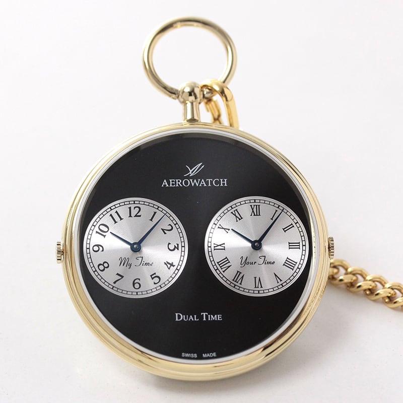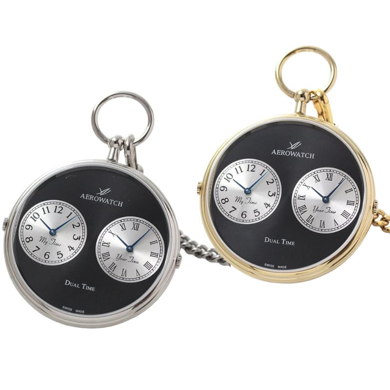 AERO(アエロ) クォーツ式 デュアルタイム 懐中時計 05826PD03・05826JA03/ペア懐中時計