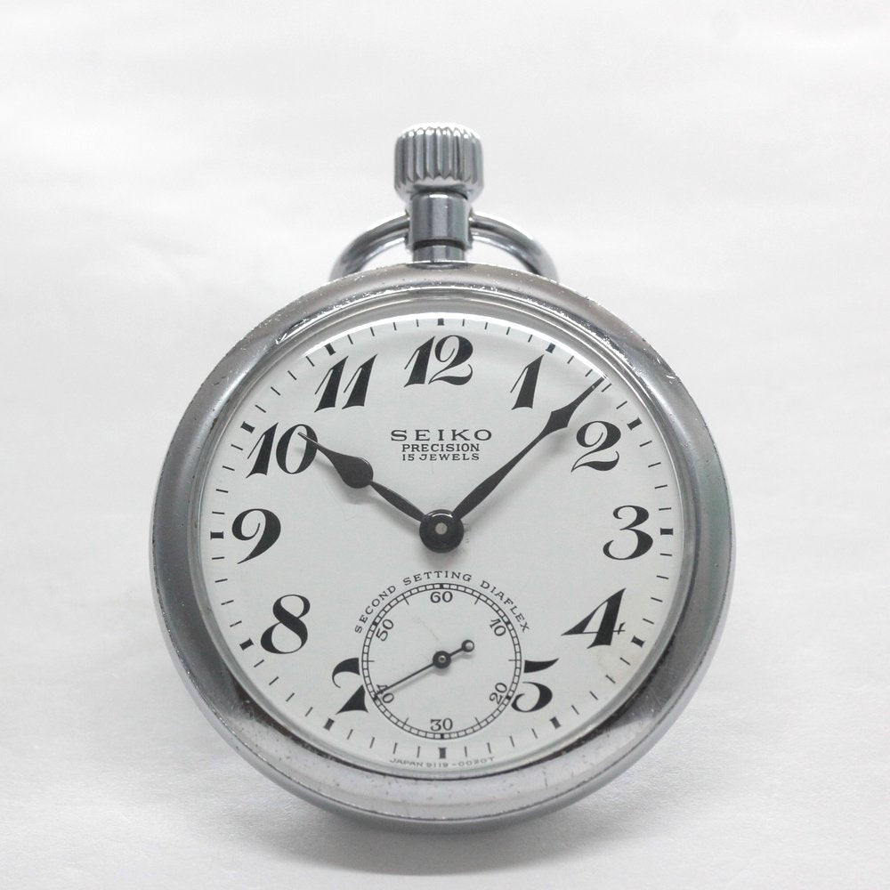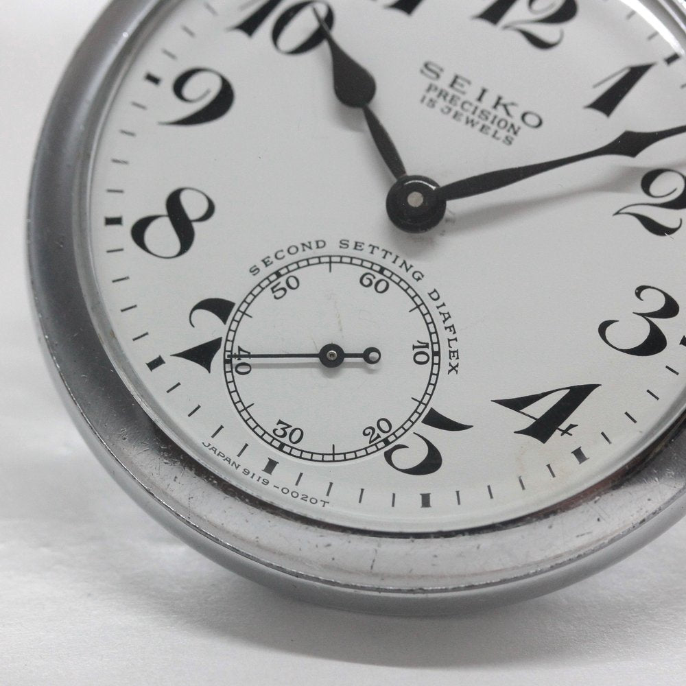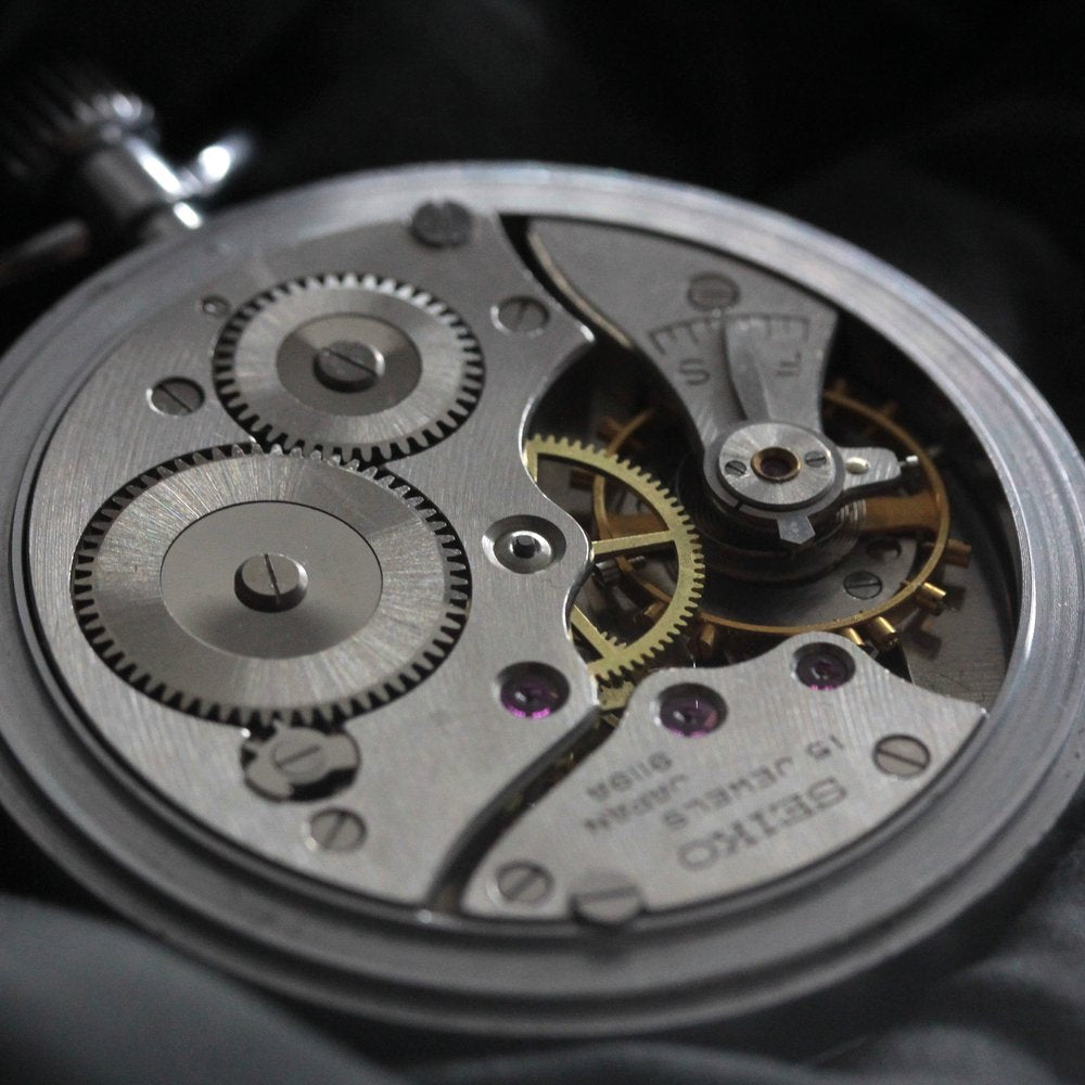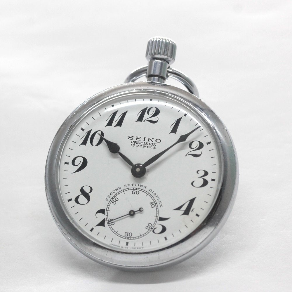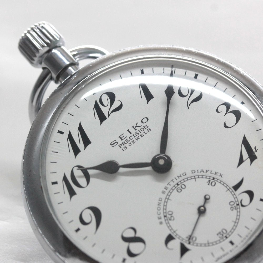 国鉄時代の職員が使用し、正確さが世界トップレベルの日本の鉄道史に欠かせない存在の19セイコー。15石で秒針止め機能がついているハイスペックな時計です。