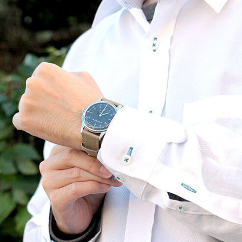 ムーブメントにはシチズン・ミヨタ製クォーツ(日本製)を採用。正確で扱いやすく、日常使いに安心の仕様です。