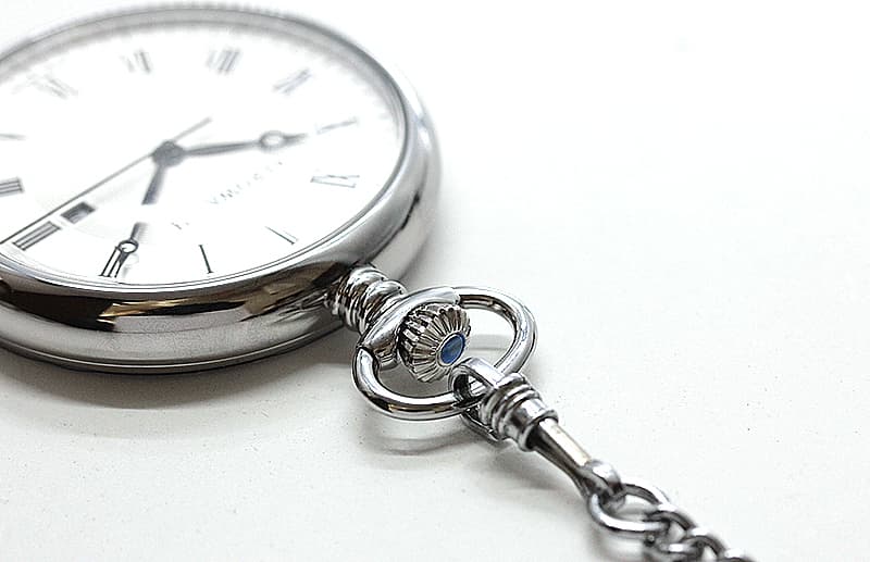 クラシカルなスタイルはそのままに、時計になれてない方でも使いやすいクォーツムーブメントタイプ。3時方向にはデイトカレンダーと実用性の高い時計で、裏面には幅広く文字刻印が可能なので贈り物にもおすすめな懐中時計です。