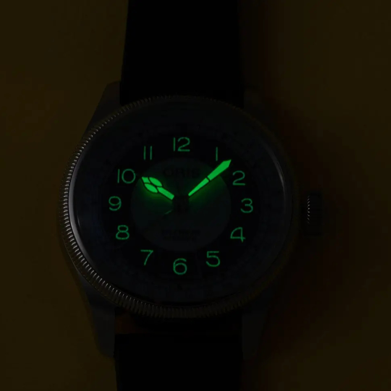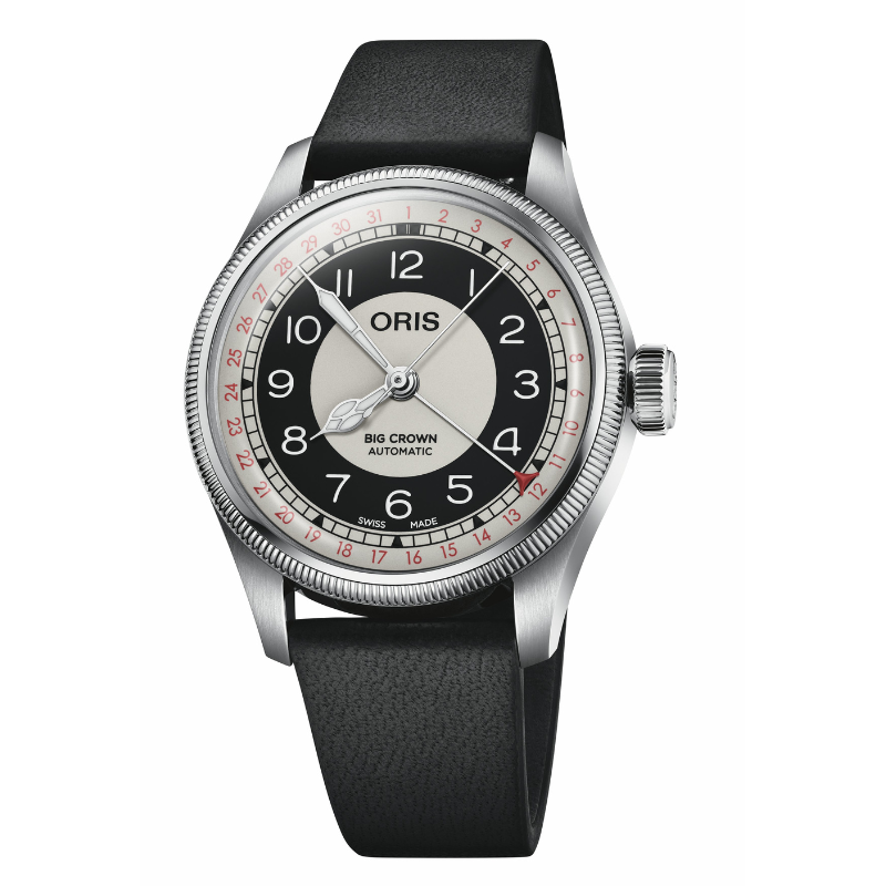 約90年続くパイロットウォッチの伝統に、1920年代からオリスが愛したブルズアイダイアルを融合させたモデルです。