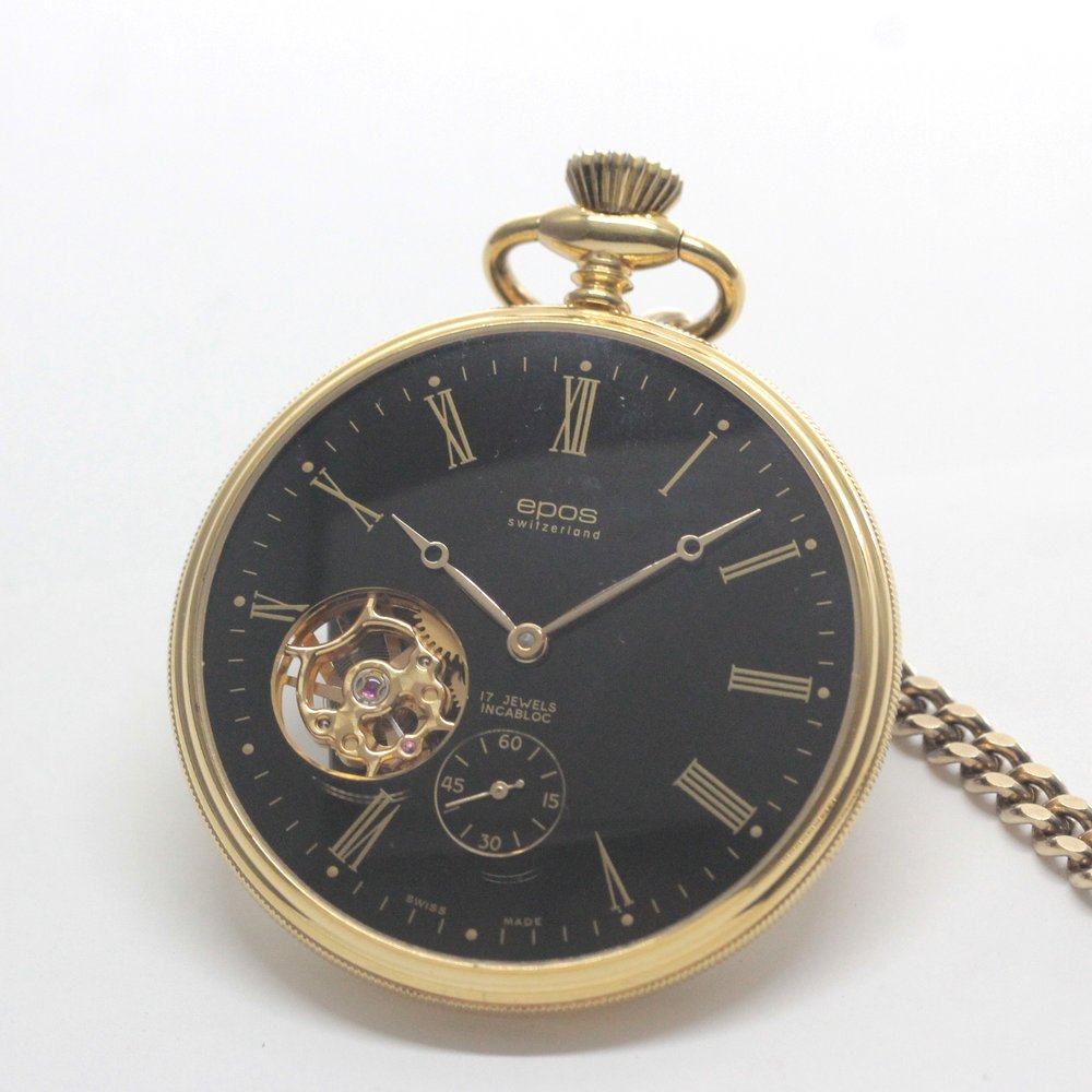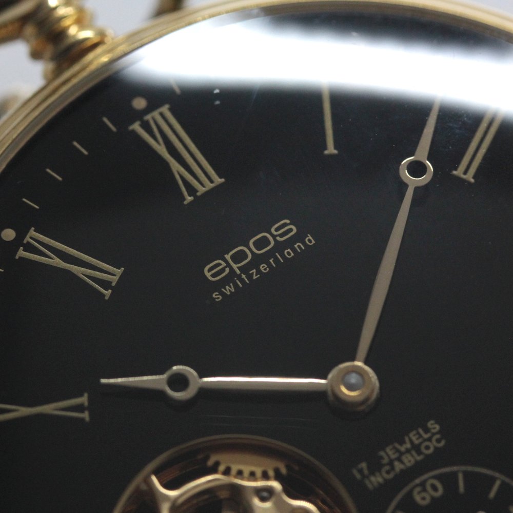 認定中古品のエポス(epos)/スケルトン懐中時計/2090gpbk/黒文字盤/ローマン数字/epos-110