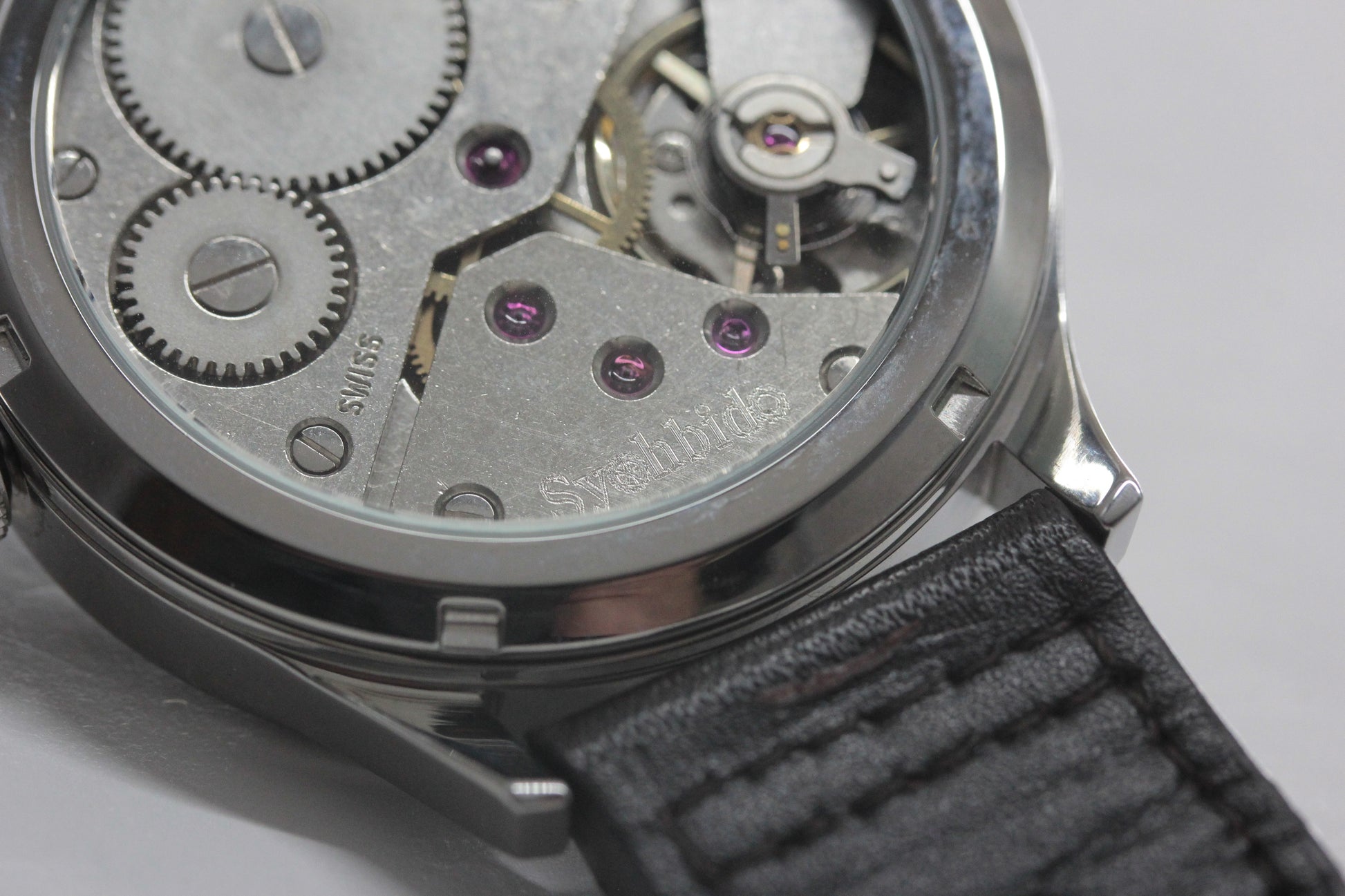 スイス製オールドムーブメント、ETA社製ユニタス6498搭載。