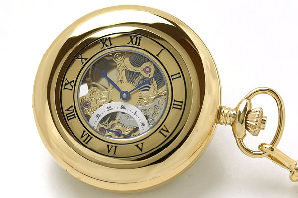 人気のナポレオンタイプ(ハーフハンターケース)と、機械式ならではのスケルトンタイプが融合したペア懐中時計。