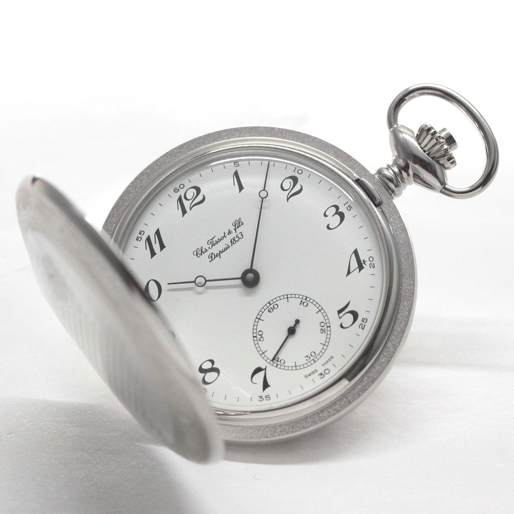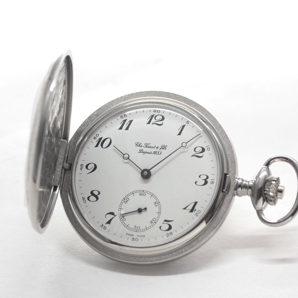 絶版モデルのティソ(TISSOT)/ ヴィンテージウォッチ / シルバーカラー ハンターケース /アラビア数字/ 手巻き式 / 懐中時計 / tissot-1041