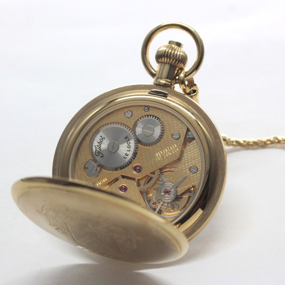 絶版モデルのティソ(TISSOT)/ ヴィンテージウォッチ / ゴールドカラーオープンフェイス / ローマン数字/ 手巻き式 / 懐中時計 / tissot-1048