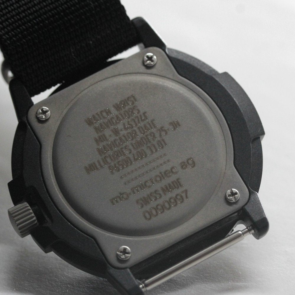 スイスのMBマイクロ・テック社が開発したトリチウム・ガスライトがインデックスに配置されてます。MB-マイクロ・テック社がリリースしたブランドがトレーサーなので、本家本元のミリタリーウォッチと言えるでしょう。