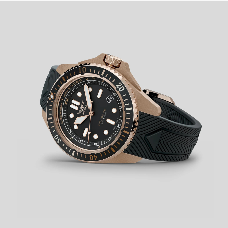 「XPRO DIVE 200」は、ブランド初の本格ダイバーズシリーズであり、海と空をつなぐ”というAVIATORの新たな挑戦を象徴するモデルです。