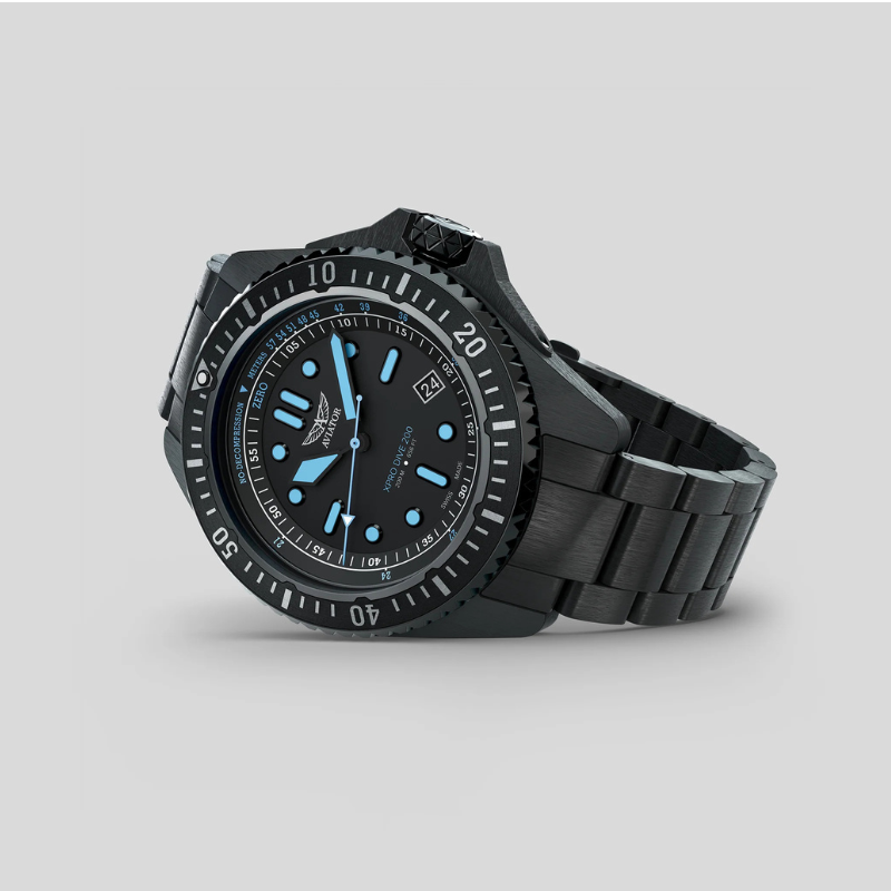 「XPRO DIVE 200」は、ブランド初の本格ダイバーズシリーズであり、海と空をつなぐ”というAVIATORの新たな挑戦を象徴するモデルです。