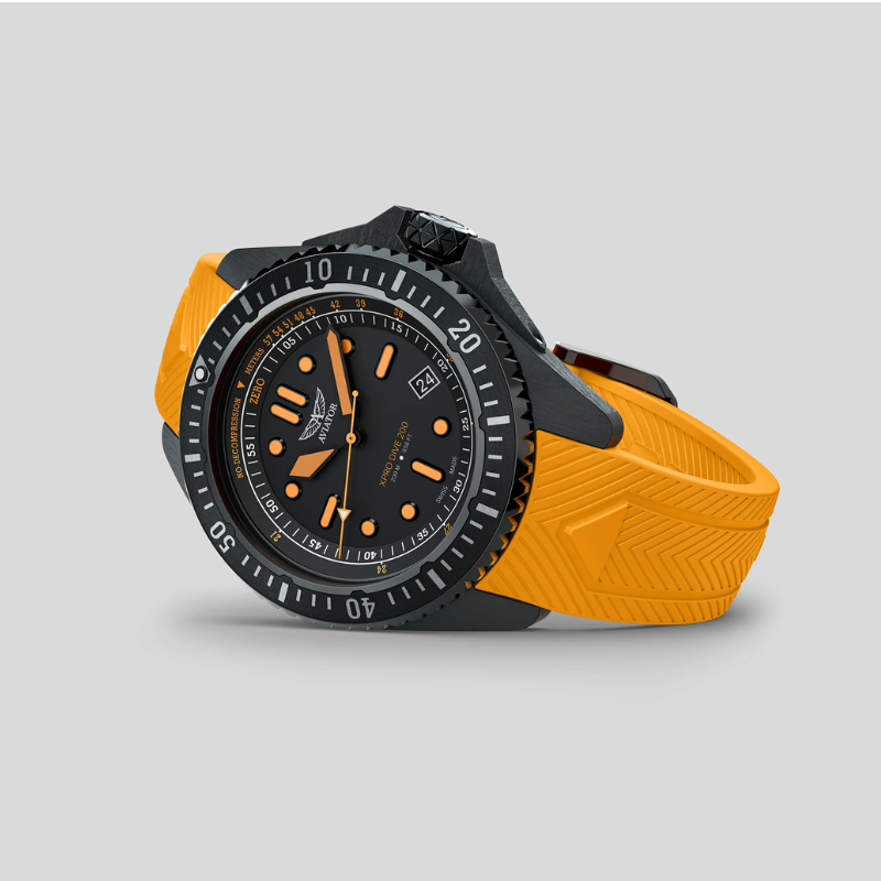 AVIATOR XPRO DIVE 200は、海と空という二つの世界を自在に行き来するために生まれたデュアル・エンバイロメント・ツールウォッチです。